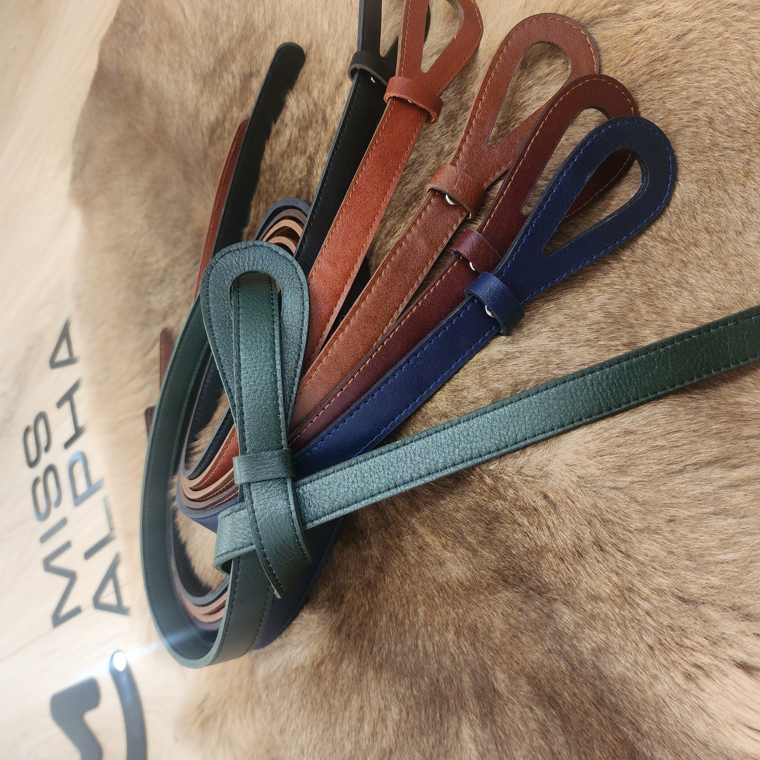 کمربند چرمی زنانه دست دوز کد B1 طراحی و تولید اختصاصی برند" میس آلفا" مناسب استفاده به عنوان اکسسوری روی پیراهن و کت و شلوار چرم گاوی عمر زیادی داشته و سطح آن پوسته پوسته نمیشود. ویژگی بارز این محصول دو رو بودن آن است . قابلیت انتخاب دو رنگ مختلف چرم در یک کمربند از دیگر ویژگی های این محصول است. جزییات بستن و فیلم تن خور محصول در پیج اینستاگرام miss_alpha_mode@موجود میباشد. تلفن جهت پشتیبانی و راهنمایی : ۰۹۰۵۶۶۳۲۴۷۴